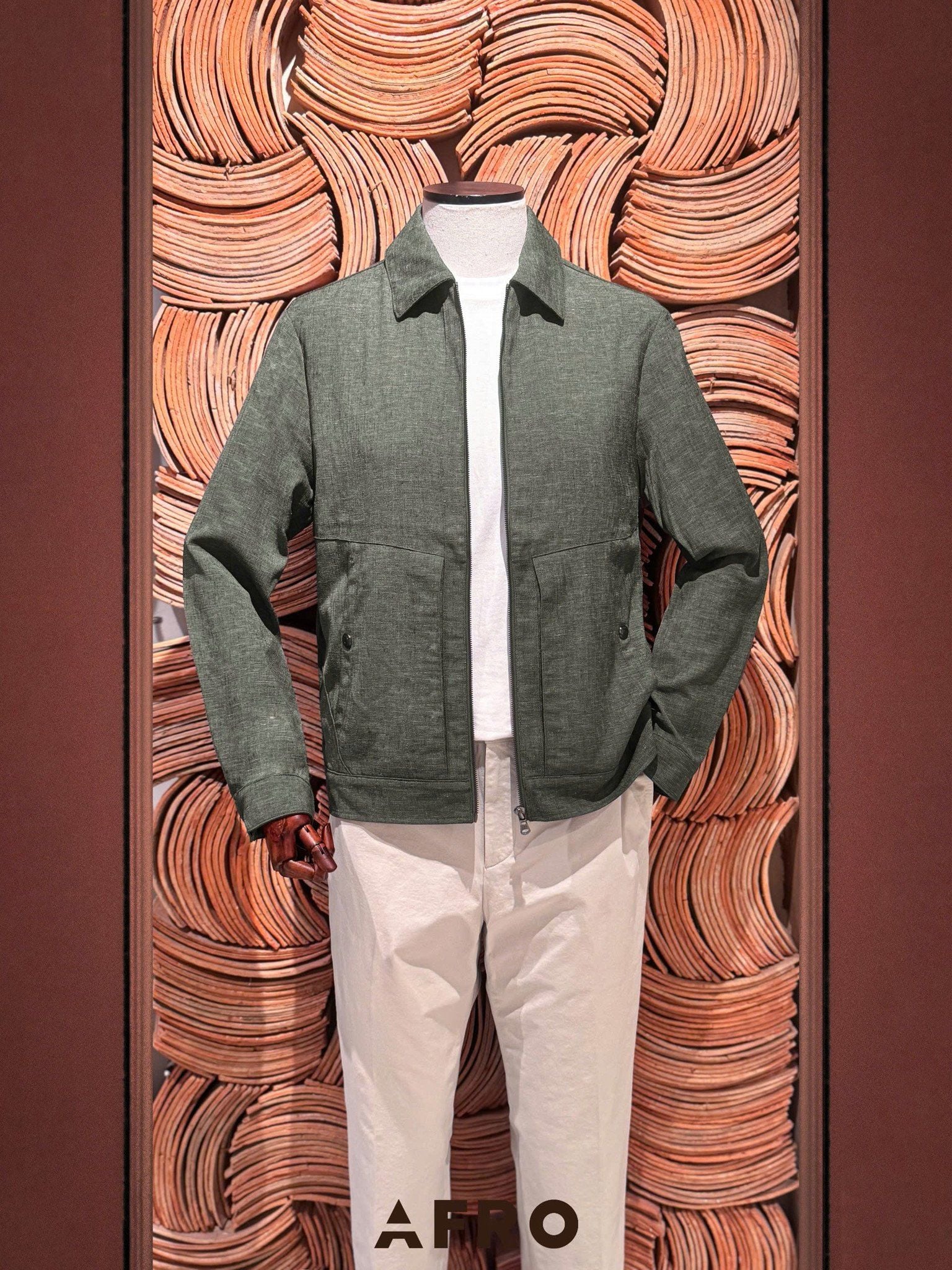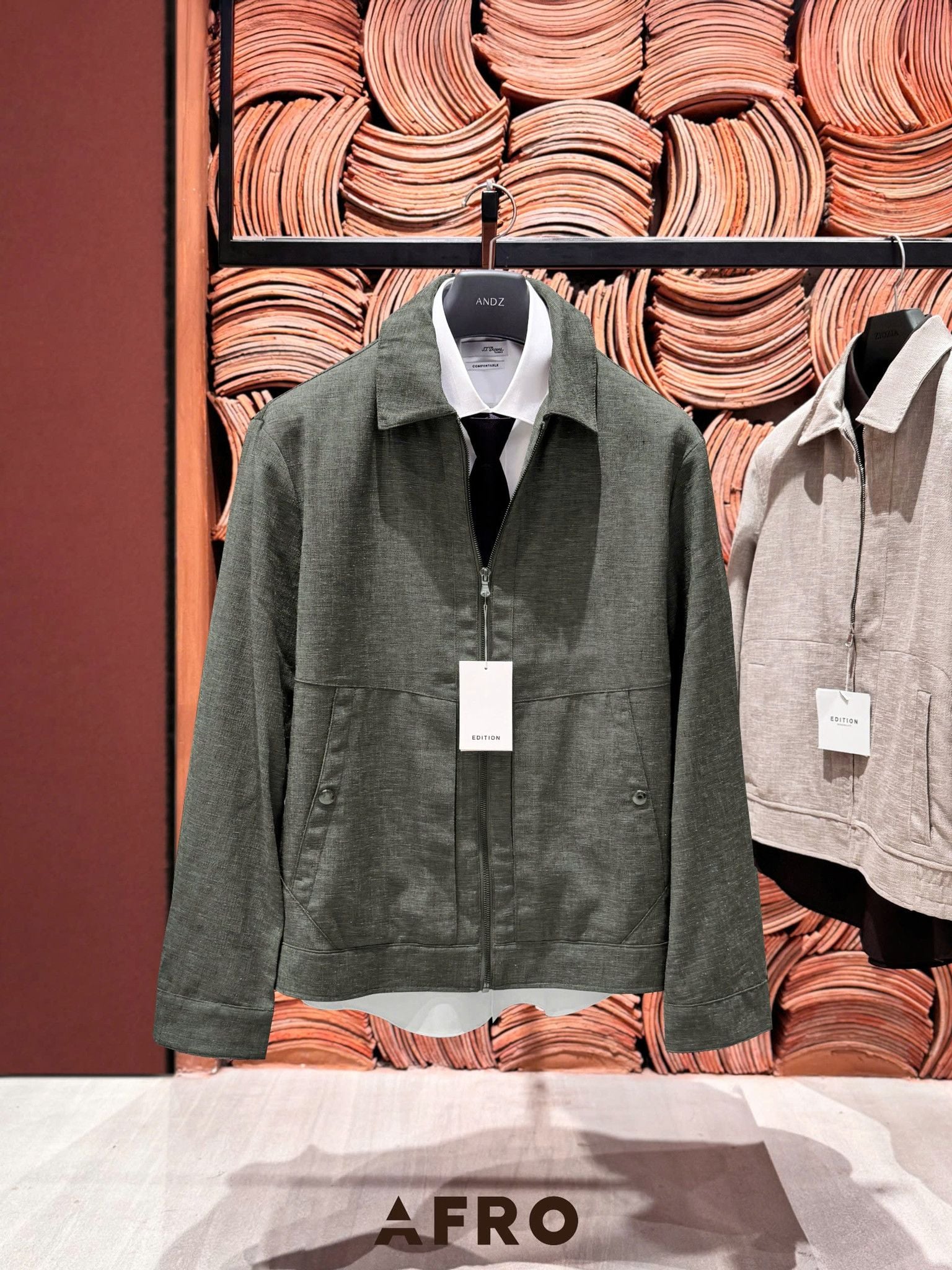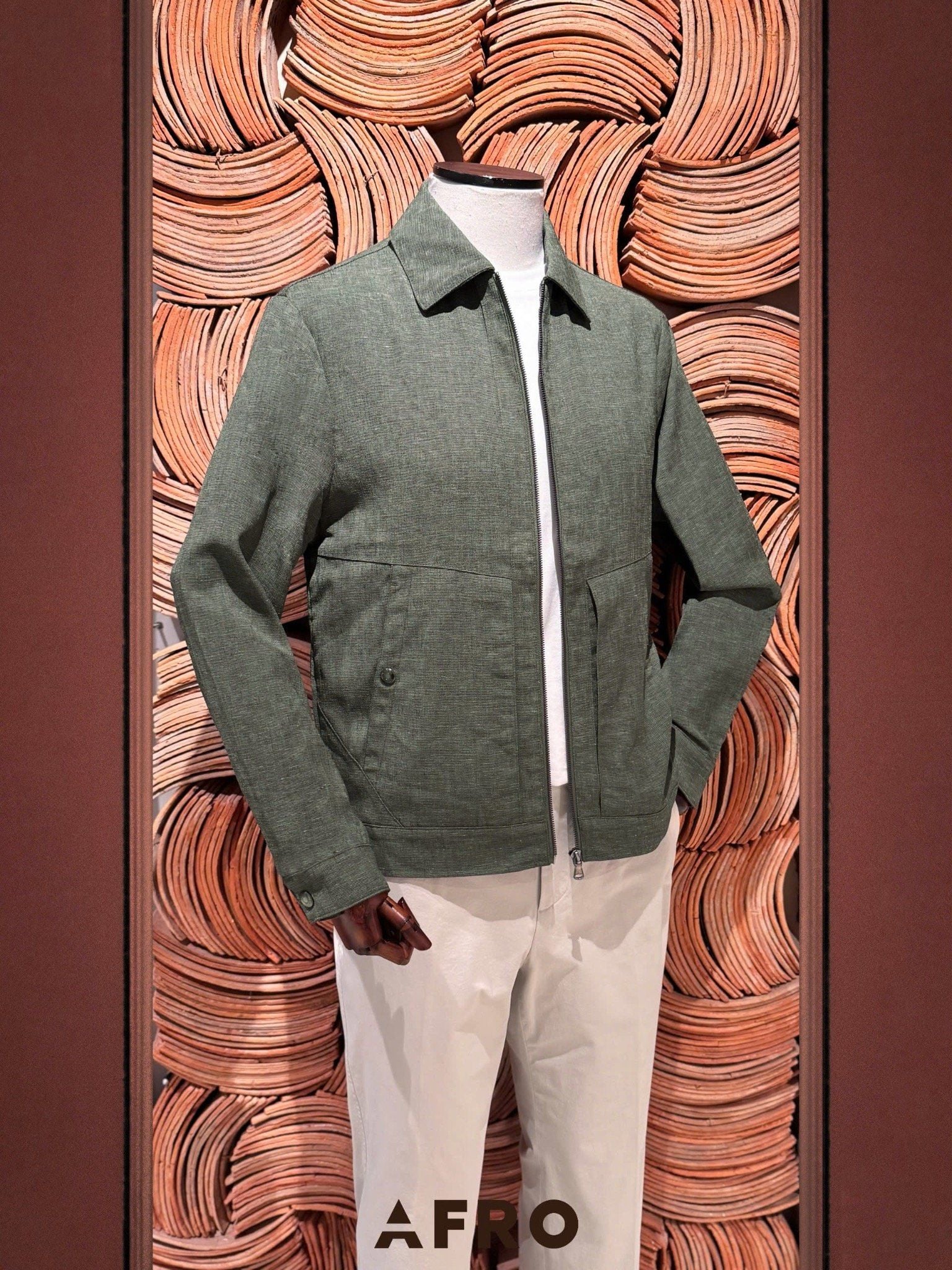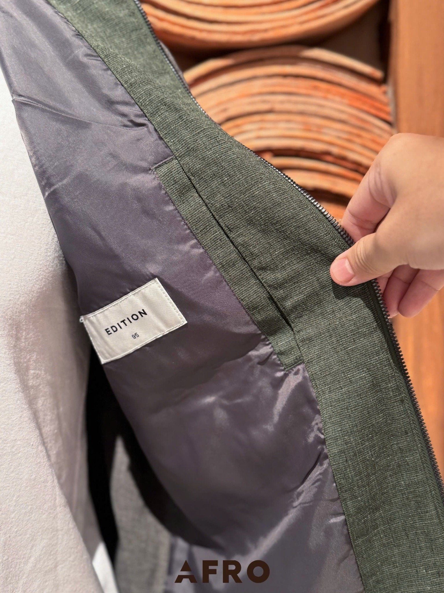 Phom regular fit chuẩn mực, cổ áo dựng dáng, tay áo may khéo léo vừa vặn tạo nên tổng thể cân đối, lịch lãm. Phần khóa kéo kim loại ẩn tinh tế giúp giữ form gọn gàng và tiện dụng trong mọi hoàn cảnh.