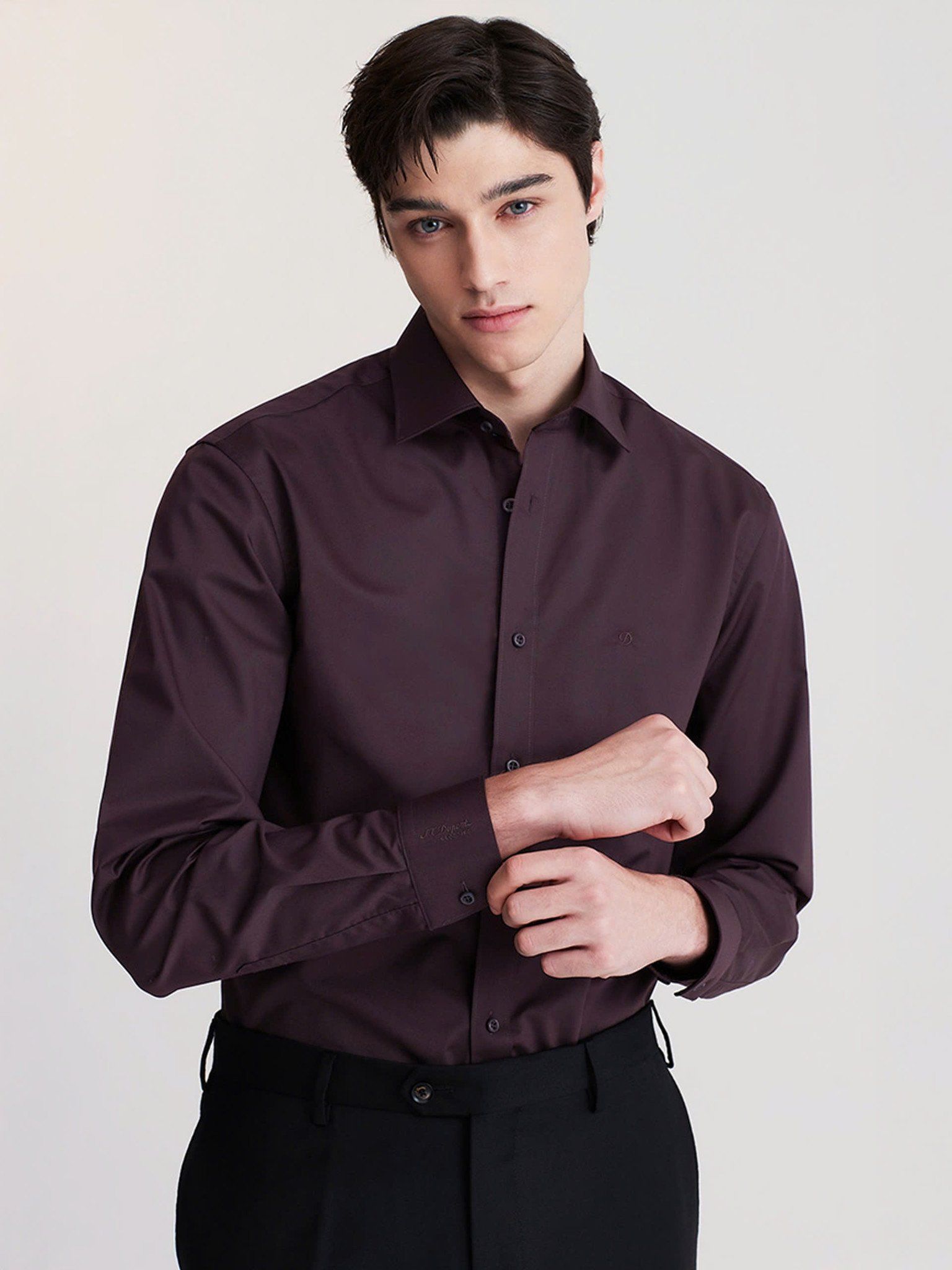 St.Dupont Stretch Solid Comfortable Shirt Wine