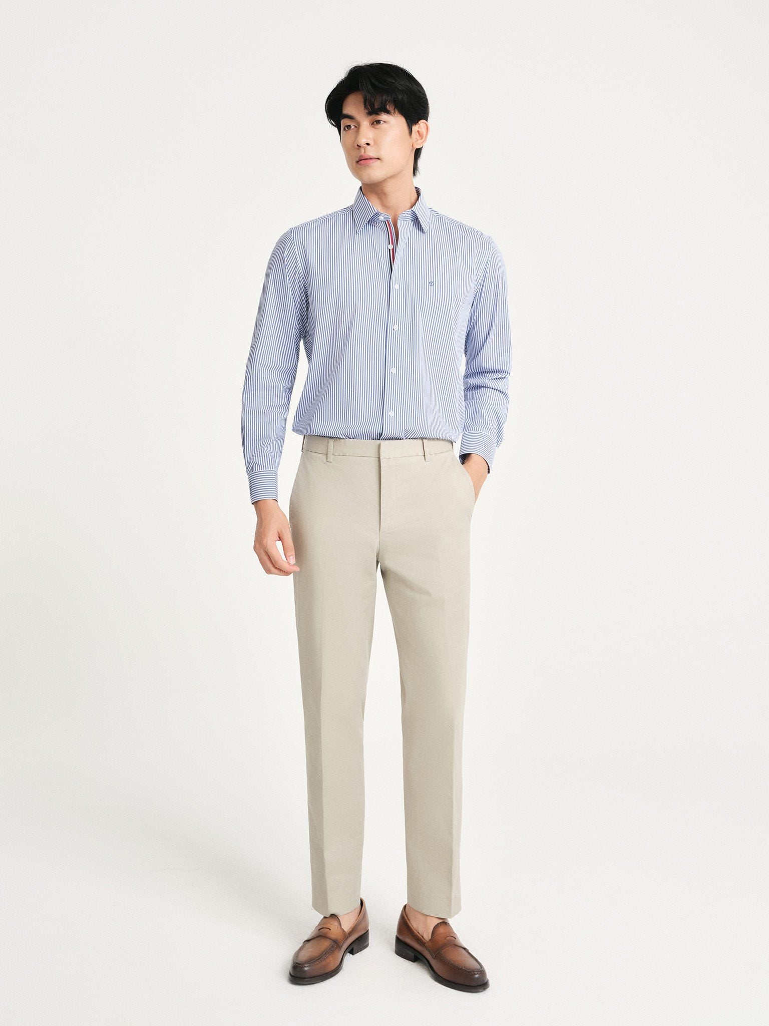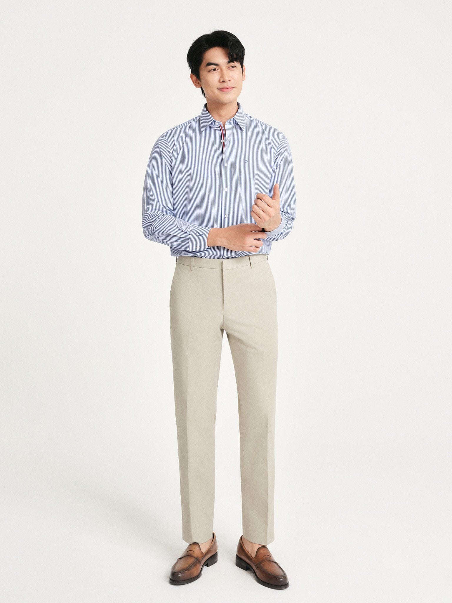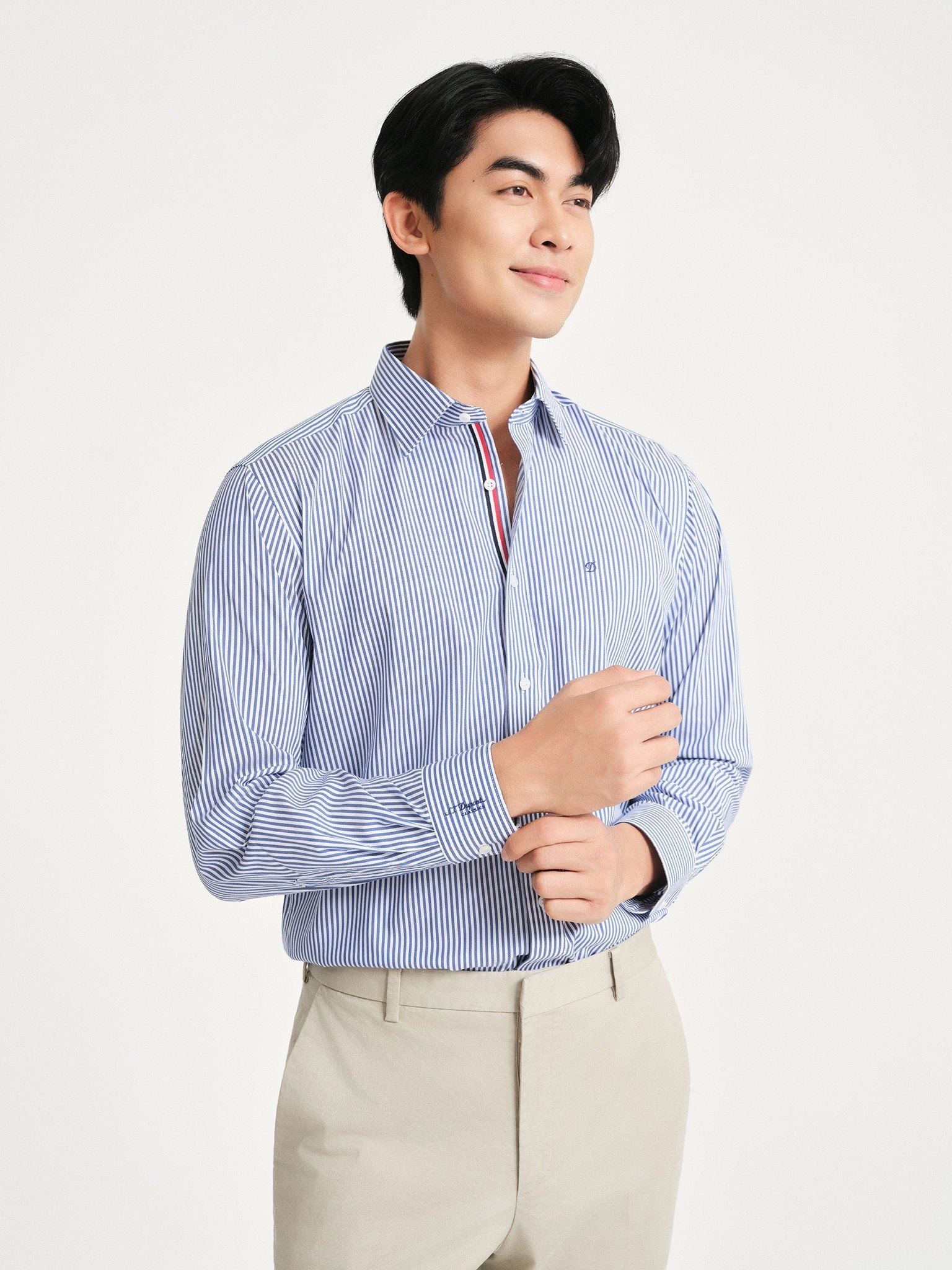 - CHẤT LIỆU: Lấy cảm hứng từ phong cách London cổ điển, chiếc sơ mi sọc xanh trắng này được tái hiện đầy hiện đại với tỉ lệ pha sợi lý tưởng: 71% polyester, 24% cotton, 5% spandex – giữ form đứng dáng, co giãn linh hoạt, dễ chăm sóc và bền bỉ theo thời gian.